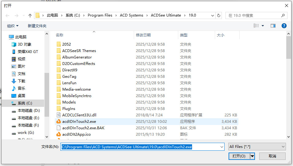 默认目录【C:\Program Files\ACD Systems\ACDSee Ultimate\19.0】