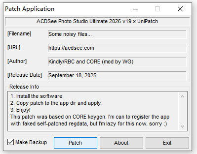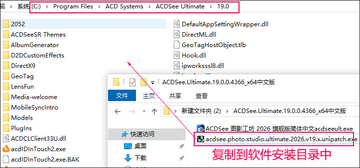 6、再将激活文件acdsee.photo.studio.ultimate.2026.v19.x.unipatch.exe复制到软件安装目录下;