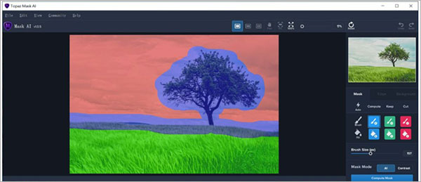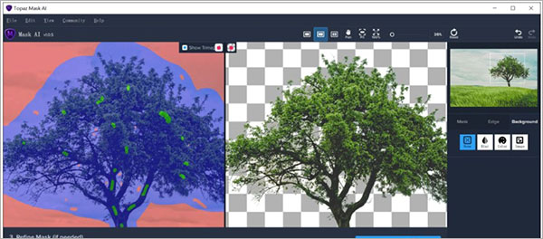 对于像树这种有复杂边缘的对象,应告诉Mask AI更多的细节以便后续计算的准确性。
