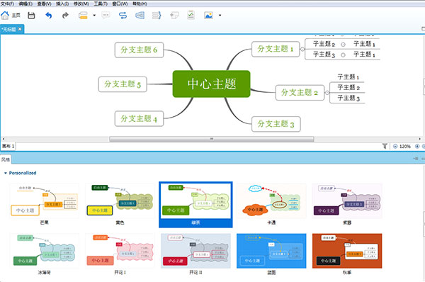 6、到这里,你的思维导图就基本完成啦,你也可以使用XMind软件自带的导图模板,XMind还支持用户自定义模版。