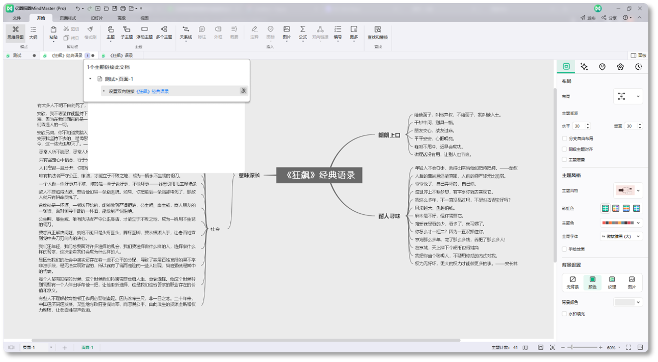 亿图脑图还内置了知识图谱功能,可以通过创建双向链接来整理复杂信息,让知识之间形成关联,方便管理和回顾。软件的界面设计也很贴心,一键设置主题、边距等功能,操作简单又高效。