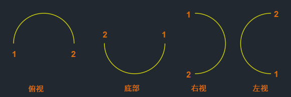 我们首先创建一条具有如下图所示圆弧的多段线。