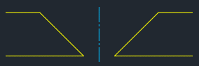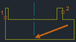 我将使用 CENTERLINE 命令,然后选择线 1 和线 2 来创建中心线。注意中心线没有延伸出设计的底部?这是因为我为中心线选择的线的长度不同。