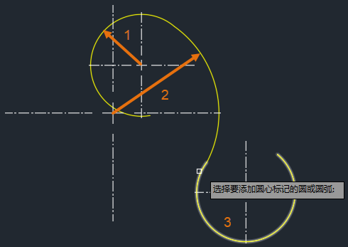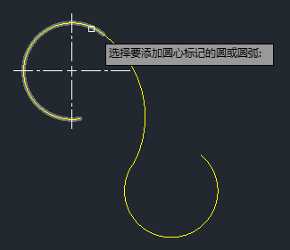7、继续选择圆弧段以添加中心标记。