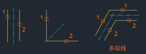 注: 创建中心线时,多段线会被视为单独的线段。