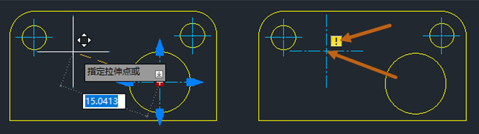 为了修改此设置,我将选择中心线,然后使用长度夹点将中心线拖过几何图形的边。