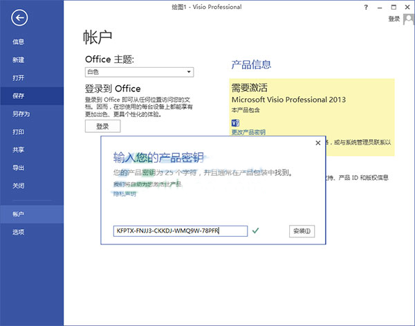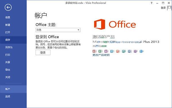 9、点击“文件”菜单--“帐户”--可以看到visio2013需要激活;