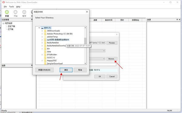 5、最后一步我们选择好储存地址之后,在Save as输入框中输入文件保存的名称之后,点击OK按钮就可以开始下载网页视频了。