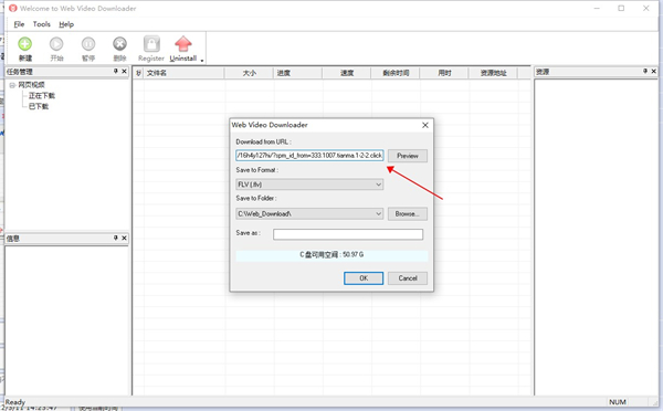 3、结合Flv Player使用还可以在下载管理器中预览Flv视频文件。