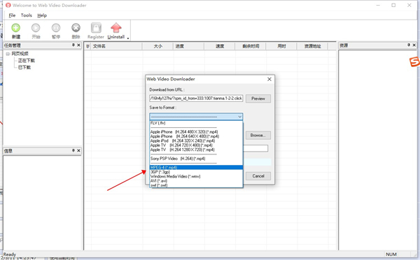 2、可以把下载的视频存储为MP4,WMV,AVI 以及 PSP,iPhone等专用视频格式。