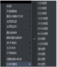 K线图右键菜单选择【分析周期】的展开选项,选择不同的分析周期;