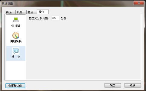 也可以点击〖系统〗—〖设置〗—〖个性设置〗选项后,会出现系统设置界面,在【操作】页的【其它】选项卡中的自定义周期分钟中,设置相应的数值,点击确定即可。
