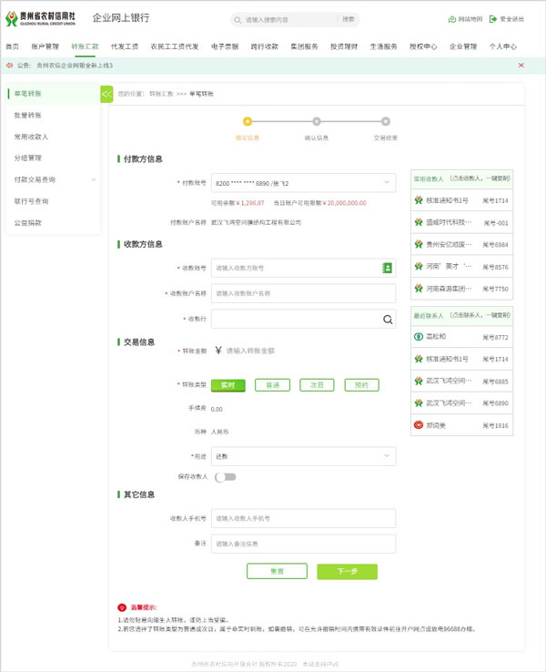 黔农云企业版电脑版是由贵州省农村信用社联合社推出的一款专为企业设计的网上银行软件。它集合了多种功能,包括账户管理、转账汇款、代发工资、农民工工资代发、电子票据、跨行收款等,极大地提升了实用性。与传统网银不同,它还提供了动态演示功能,让用户在登录页面即可体验各项操作,如单笔或批量转账、查询等,方便用户熟悉软件使用。