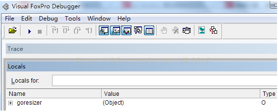 7、现在重启 vfp,在 debugger 中应该可以看到已经有一个全局变量 goResizer,