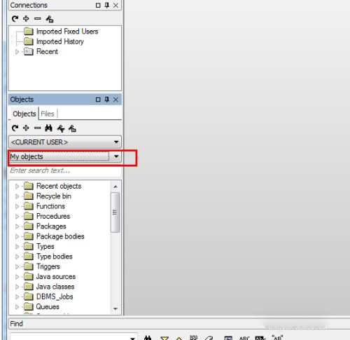 在对象浏览器选择“my object”,这里边就是SCOTT(当前登陆的用户的所有object)