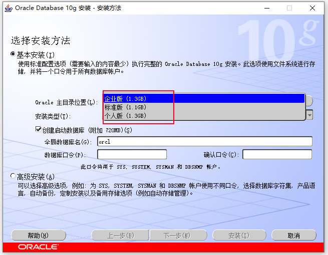 此安装类型是为企业级应用设计的。它设计用于对安全性要求较高并且以任务至上的联机事务处理 (OLTP) 和数据仓库环境。如果选择此安装类型,将分别安装所有许可的企业版选项。
