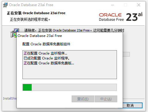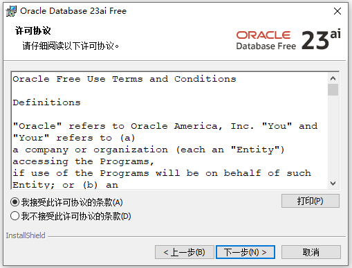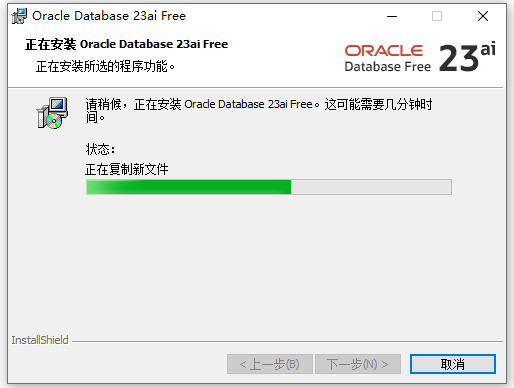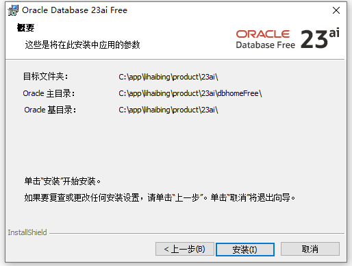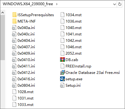 1、下载解压,得到Oracle Database 23ai Free,双击setup.exe开始安装;