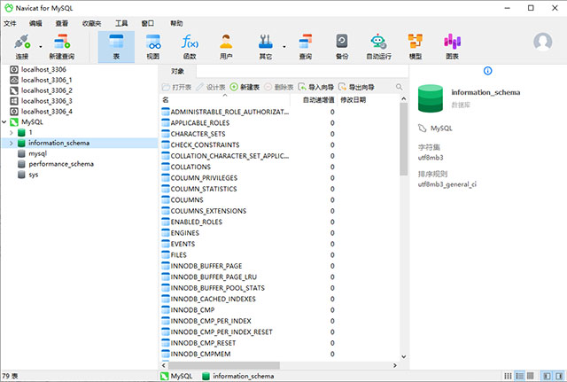 1、打开后界面如下图所示,双击连接localhost_3306,连接后会变成绿色