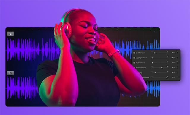 可一键自动侦测出不必要的噪音并立即修復音频,且可自由调整修復强度。
