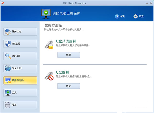 1、USB Disk Security使用主动防御的方法阻止U盘病毒传播,阻止一切利用USB存储(U盘,mp3,移动硬盘,闪存卡等)传播的病毒侵入电脑。