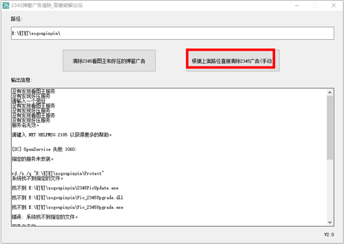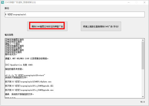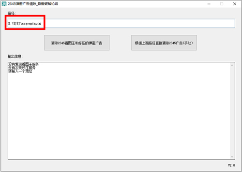 2、输入软件所在路径后一键即可清除弹窗广告