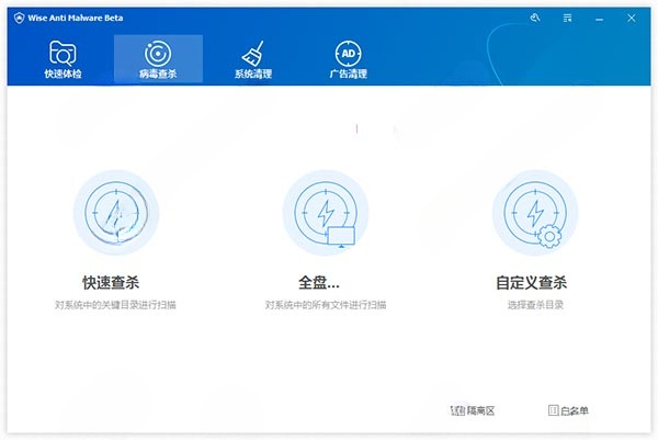 包括快速查杀,全盘查杀和自定义查杀,可以全面防止木马、Bots、Rootkit、蠕虫、间谍软体、恶意软体的侵害。