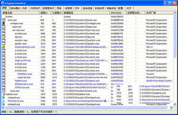 4.CreateProcess、CreateThread、LoadImage、CmpCallback、BugCheckCallback、Shutdown、Lego等近20多种Notify Routine信息查看,并支持对这些Notify Routine的删除