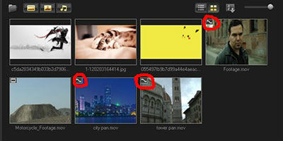 7、如在跟踪前将素材导入素材库,即使将素材从轨道上删除,跟踪数据也会保留在原视频上,只需将素材从视频库中拖拽到轨道上,即可调用。所有处理过的素材,图标左上角都有路径的标志,可以这么说,跟踪模块的加入,让会声会影的合成能力更加强大了。