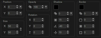 2、提供了位移、大小、透明度、旋转、阴影、边框等基本选项;