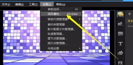 1、点击上方工具栏里面的-设置-项目属性