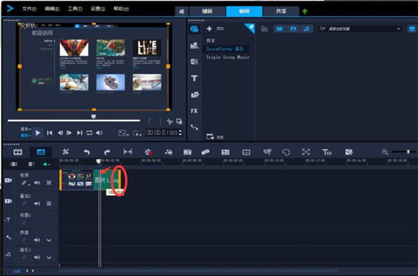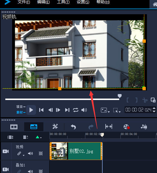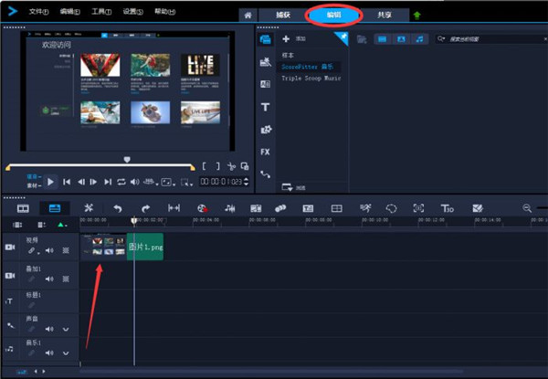 首先,我们点击上方的“编辑”,然后将想要截取的视频拖入视频轨道。