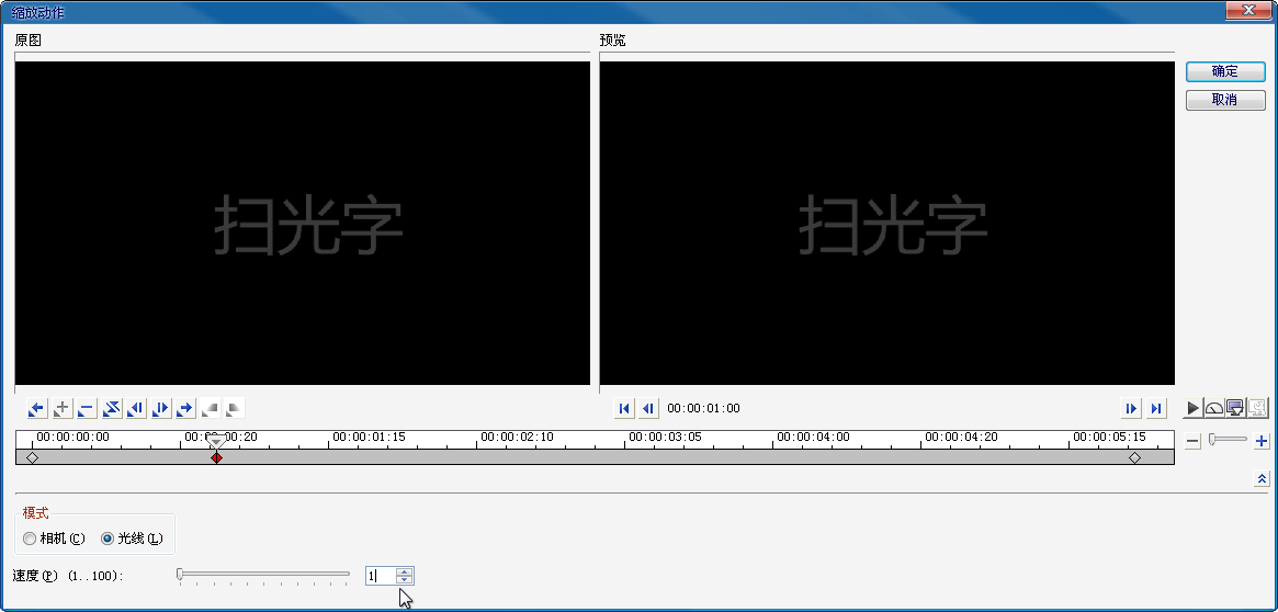3、单击“标题”按钮,然后在预览窗口中双击鼠标,进入输入模式,输入内容“扫光字”。