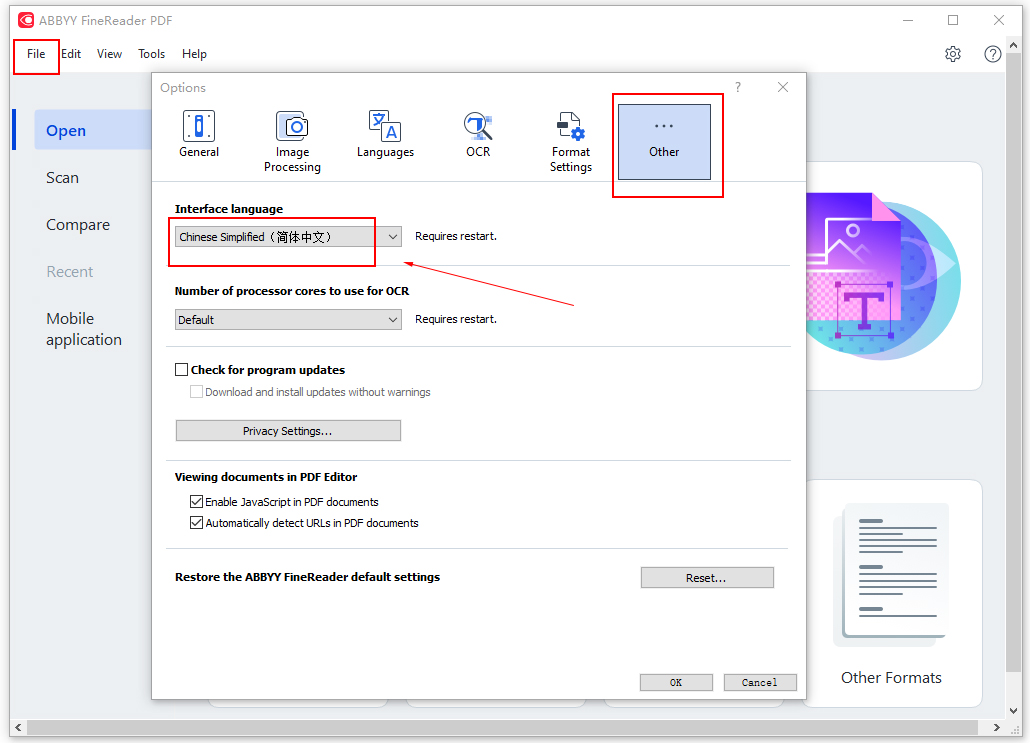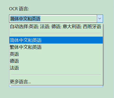 3、如果文档中有大量中英文之外的外文,建议大家在OCR语言中设置一下,一般来说保持默认即可。