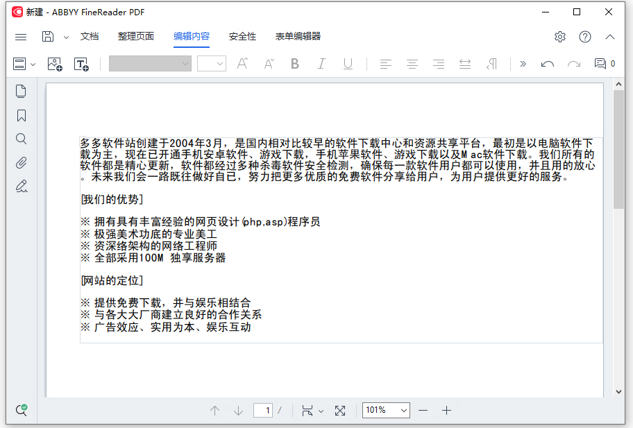 更新先前的版本或以现有 PDF 为基础创建全新文档。编辑现有文本段落或添加新段落、编辑表中的内容、添加或删除图片、重新排列页面中的布局元素。使用 FineReader PDF 编辑扫描件就像编辑数字化原生 PDF 一样便捷和轻松。