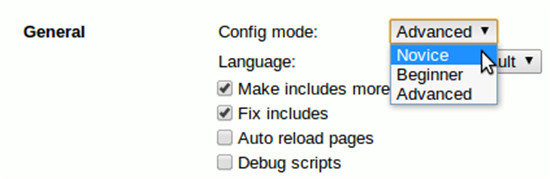 您可以为设置页面在三种不同的等级中进行选择。不常用的选项将被隐藏,通过这种方式来简化页面。