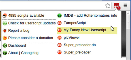 tampermonkey插件使管理您的用户脚本变得非常简单。位于右上方的tampermonkey图标显示正在运行的脚本的数量,单击图标就可以看到正在运行的脚本和可能在这个网页上运行的脚本。