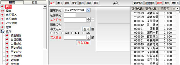 委托系统所有功能能够在功能树中选择完成,委托买卖功能、查询功能、银证转帐功能等功能均通过点击系统左侧功能树完成。