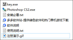 1、解压缩文件,得到photoshop cs2中文版,以注册机;