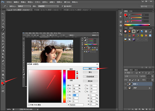 4、点击”拾色器“,选择一种颜色,在点击”确定“即可。
