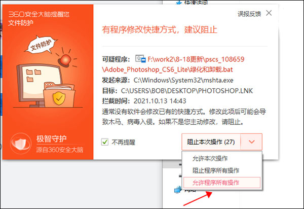 3、绿化的过程中会有杀毒软件弹出提示,选择允许即可,最后耐心等待绿化;