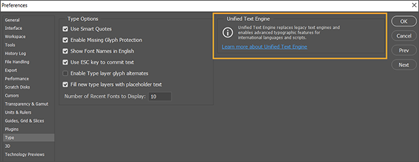 1、统一文本引擎替代了旧版文本引擎,并为全球的国际语言和文字(包括阿拉伯语、希伯来语、印度系文字、日语、中文和韩语)启用高级排版功能。凭借统一文本引擎,所有高级排版将自动可用并会组合在 Photoshop 文字属性面板中。