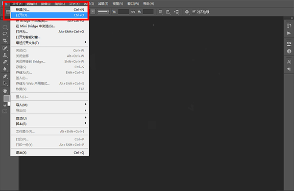 1、首先打开电脑上的Photoshop软件,在上方和左侧有两排工具栏,首先我们点击左上角的【文件】下的【打开】,插入我们要操作的图片。