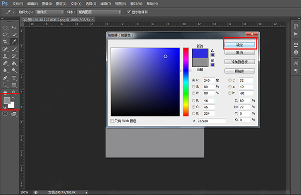 3、接着我们在左下角找到两个框框叠加的图标,双击上层图标,这时会弹出一个对话框,让我们选取自己要改变的颜色,点击【确定】就可以了。