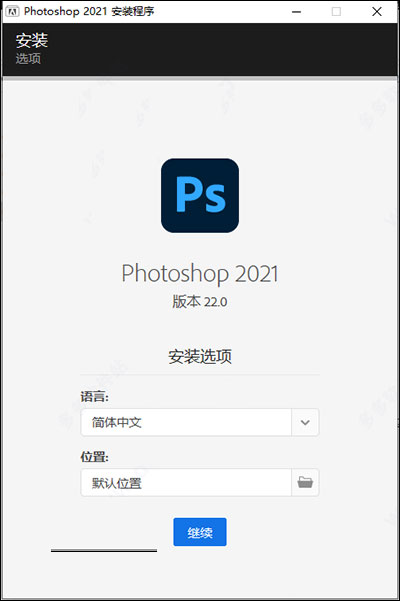 2、双击“Set-up.exe”,选择简体中文语言,自定义安装目录安装photoshop;