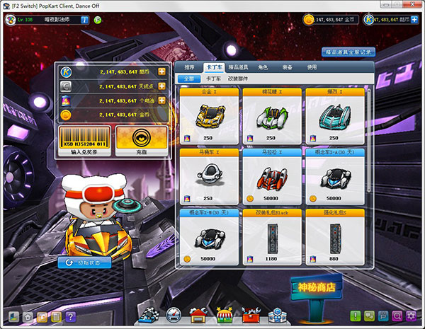 11、商店里的东西大都无法购买(因车库都有32767)PS:精品道具中有的道具开了会掉线(六选一的那种),其它的没事