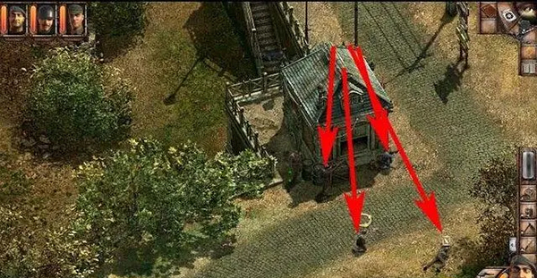 接下来我们要向检查站触发,可以使用女间谍和巡逻的敌军交谈以此来吸引敌人的注意力,