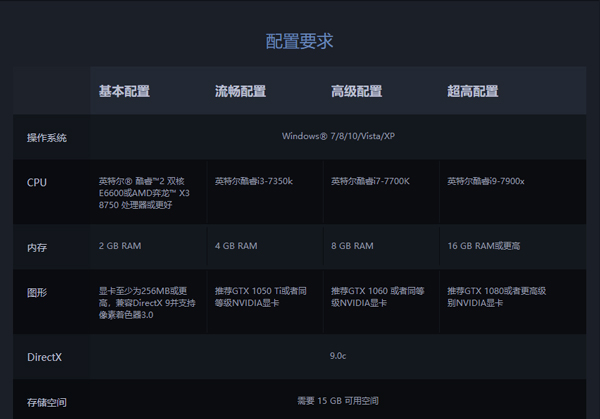 图形:推荐GTX 1050 Ti或者同等级NVIDIA显卡