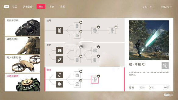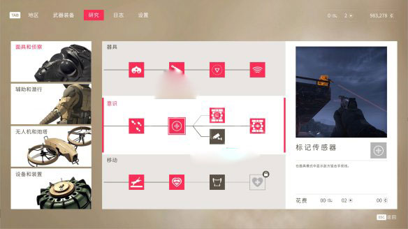 主要强化面具的扫描能力以及渡鸦自身的行动能力,建议优先解锁器具类和意识类强化。