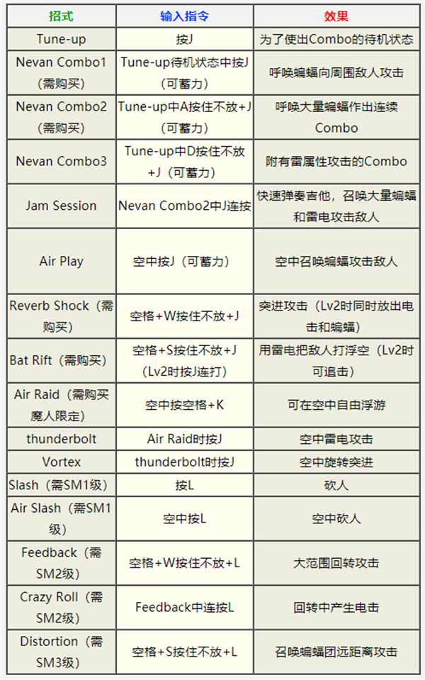 4、Nevan(电吉他):利用声音控制蝙蝠的武器,可变成镰刀形状