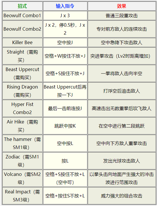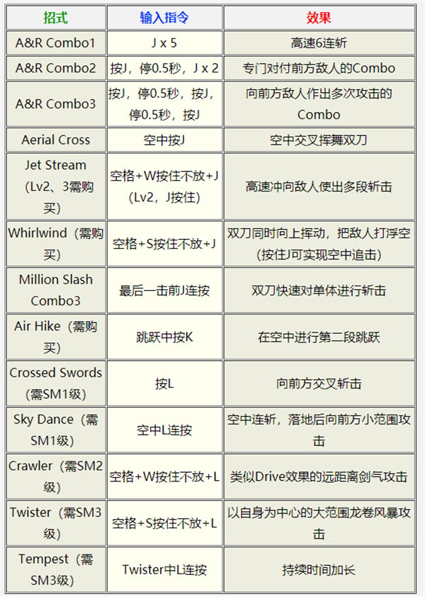 Upper Slash(空格+按住S不放+J),游戏初期本身就会,威力比较大,而且将敌人挑空,之后如果在按一次J回追加一次向下的纵斩,有很短的硬直时间。